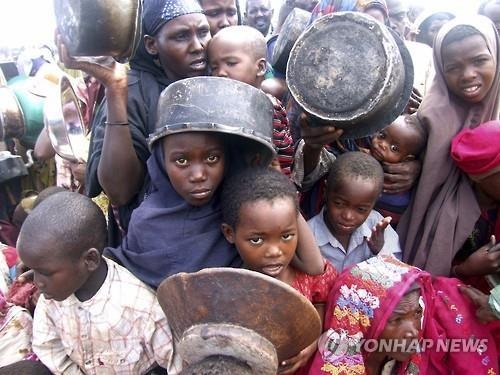 식량난으로 구호단체의 지원을 받기 위해 몰려든 소말리아 어린이들 (AP=연합뉴스 자료사진) 국제식량정책연구소 '세계기아지수' 보고서 "대기근은 감소"