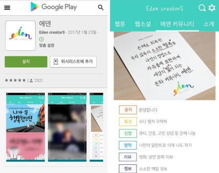 윤 작가가 공개한 ‘니가 꼭 행복했으면’은 총 네 컷으로 구성된 짧은 웹툰이다. 현재 3편이 공개됐다. 해당 웹툰은 ‘에덴 크리에이터스’(Eden creaters)라는 앱에 연재 중이다. ‘에덴 크리에이터스’의 소개 글에는 “에덴, 문화선교, 기독교문화선교, 문화선교단체” 등의 키워드들이 적혀 있다.